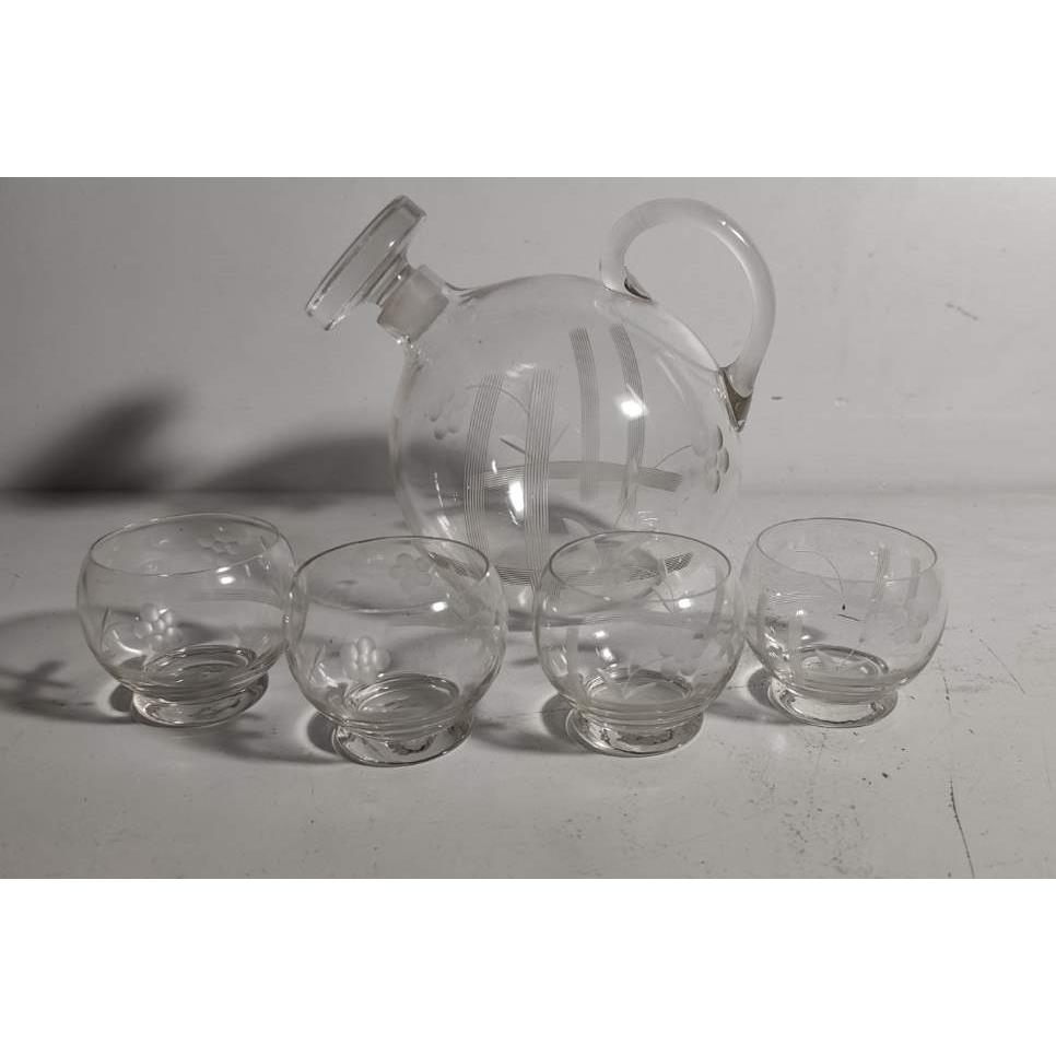 Juego de Licorera/Decantador y 4 vasitos tallados