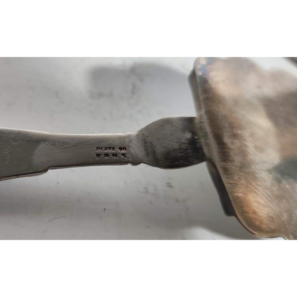 Pala de torta en plata , 2 cucharones y 2 pinchos