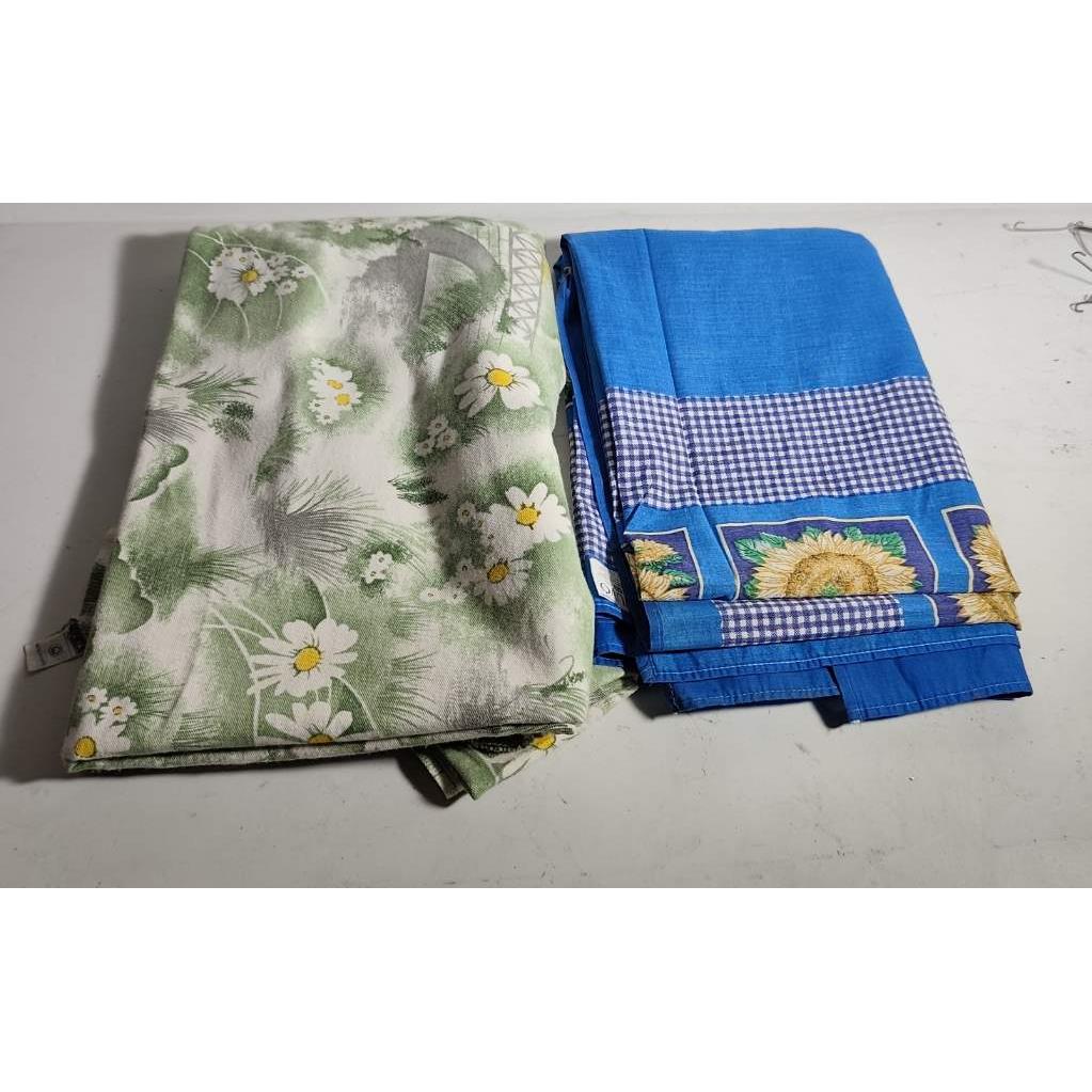 2 manteles diferentes (verde mide 2.10 x 1.60 y el de color azul 1.40 x 2)