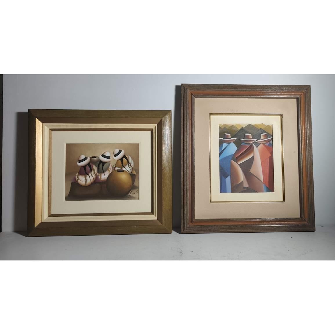 2 Cuadros oleo sobre tela motivo personajes (un marco mide 47 x 42 cm firmado Aquino. C y el otro marco mide 51 x 46 cm))