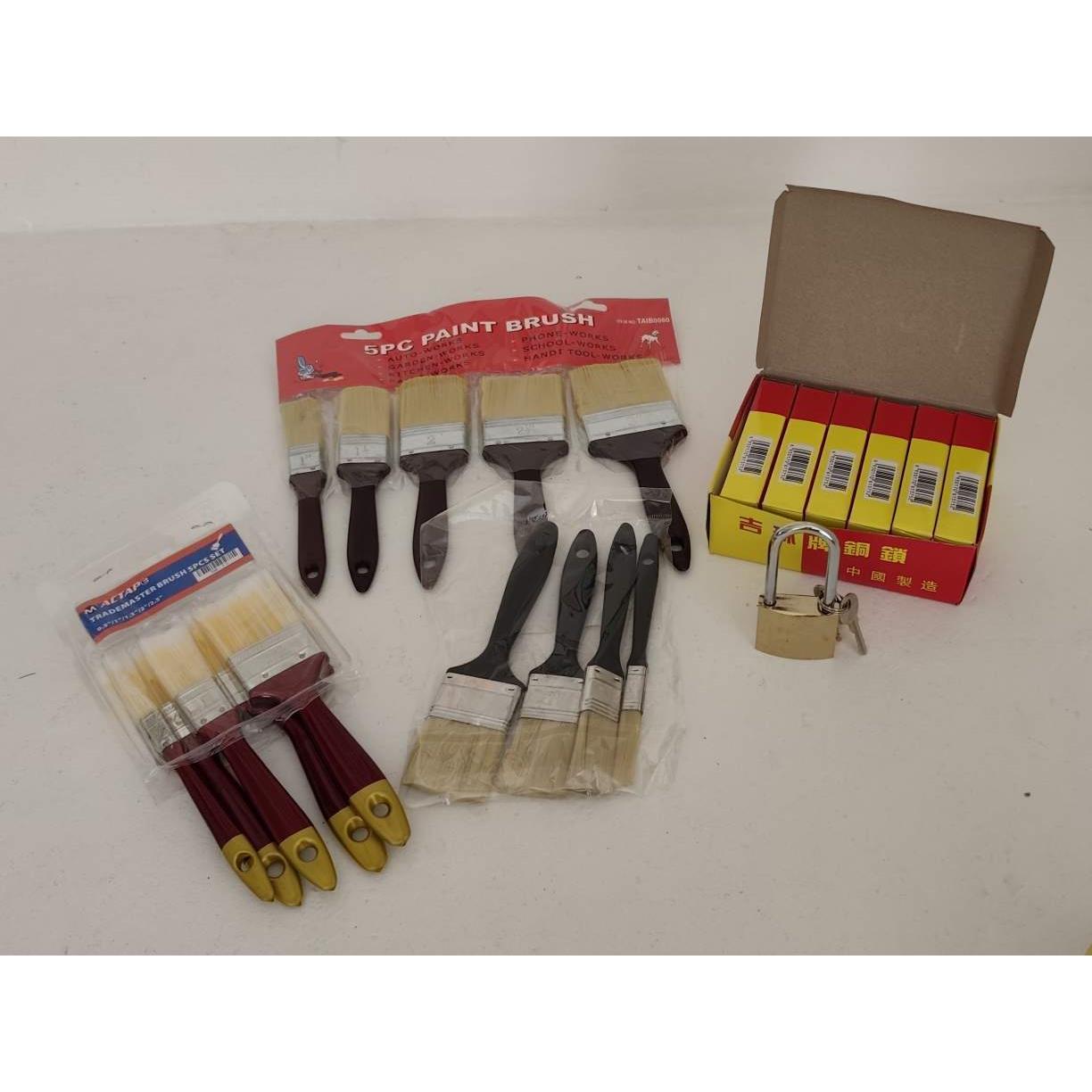 6 candados 50 mm aro largo y 3 set pinceles surtidos
