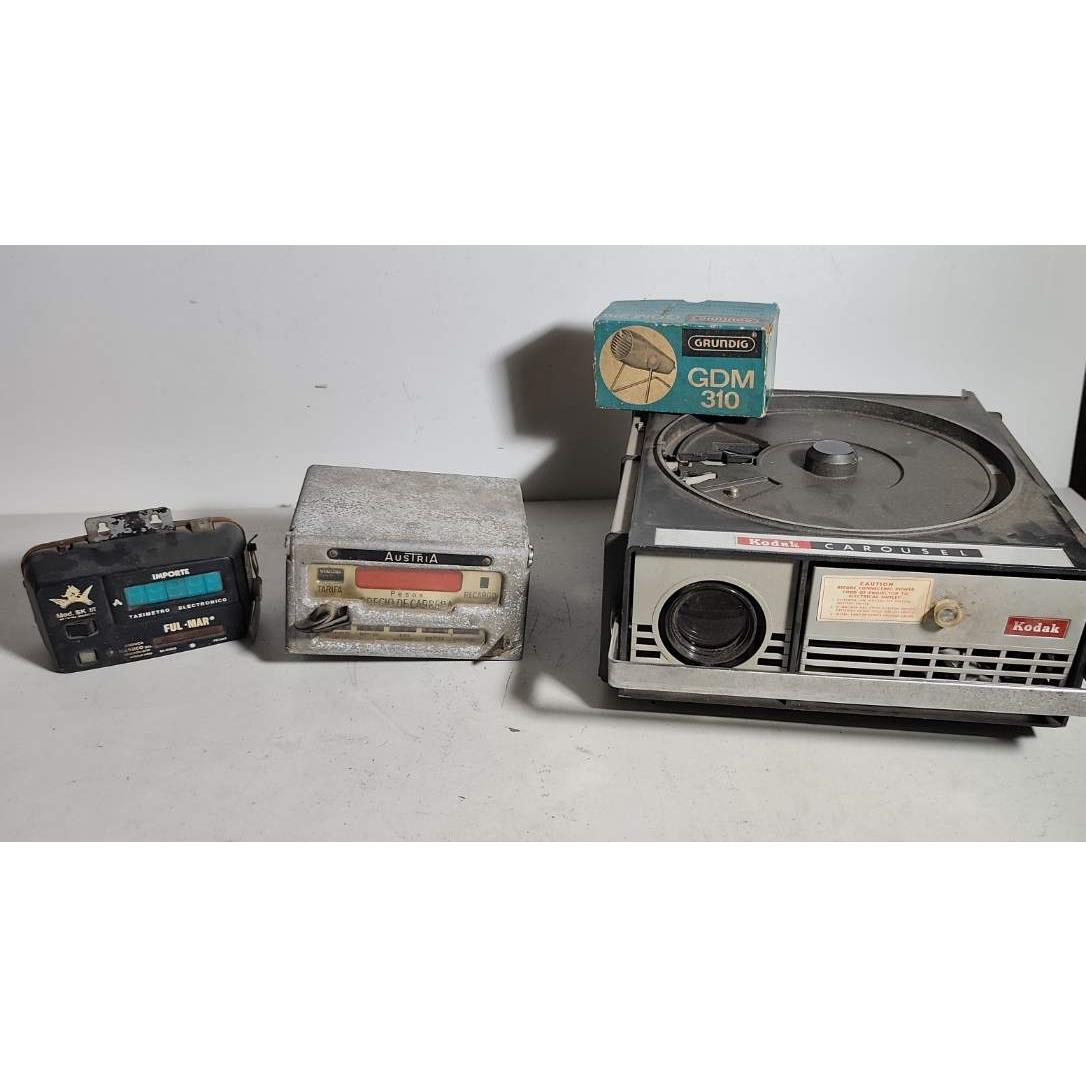 2 Taxímetros Austria y FULMAR , Proyector Kodak y antiguo micrófono Grundig