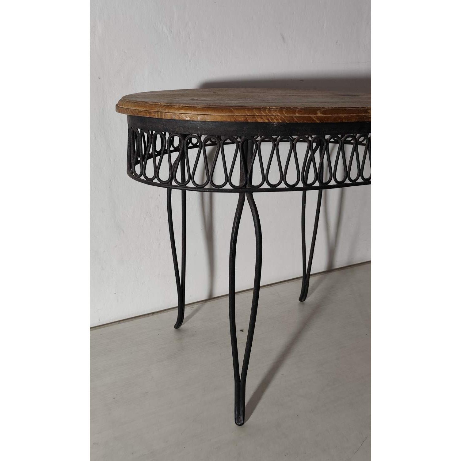 Mesita pie en hierro y tapa oval en madera (medida 77 x 46 x 64 de alto)