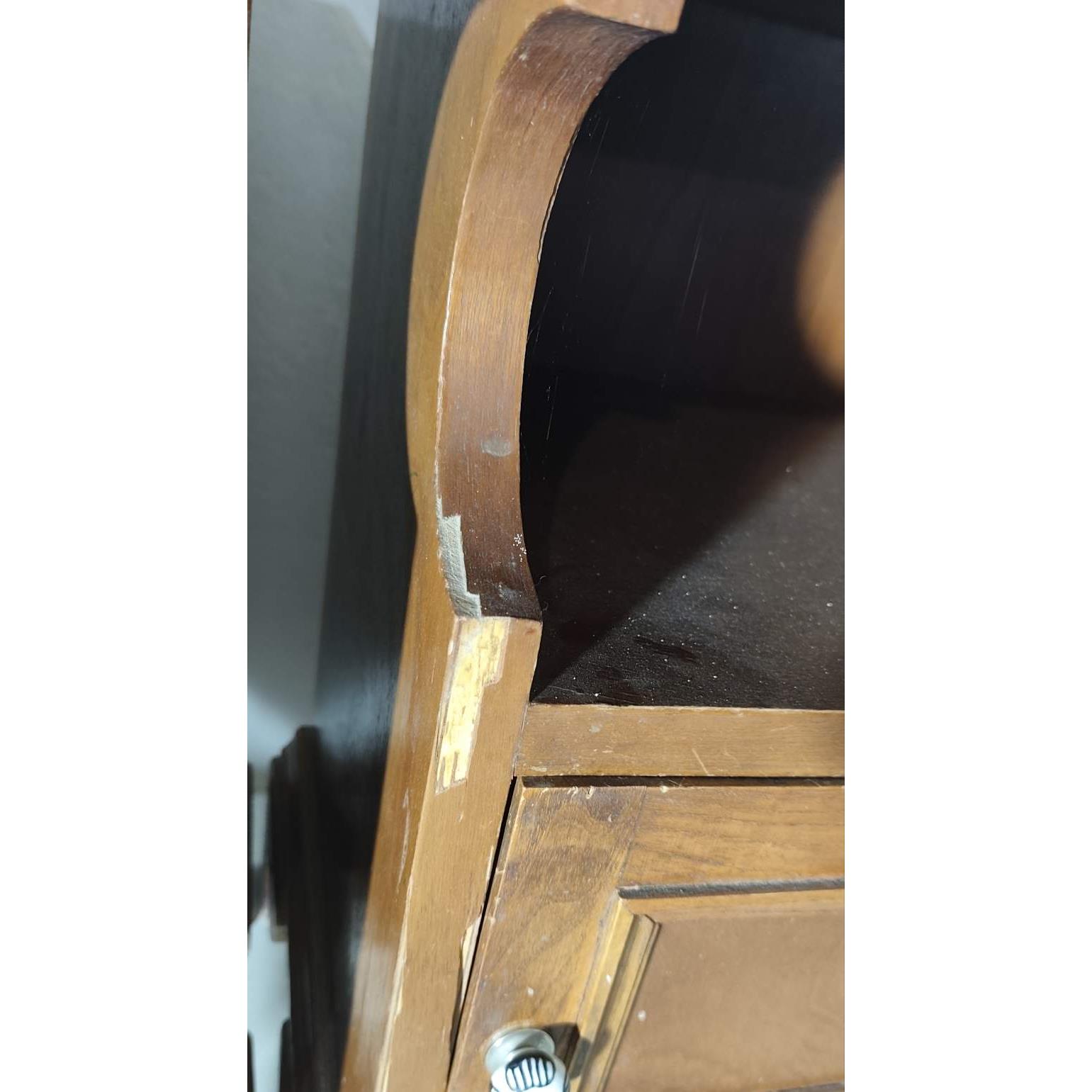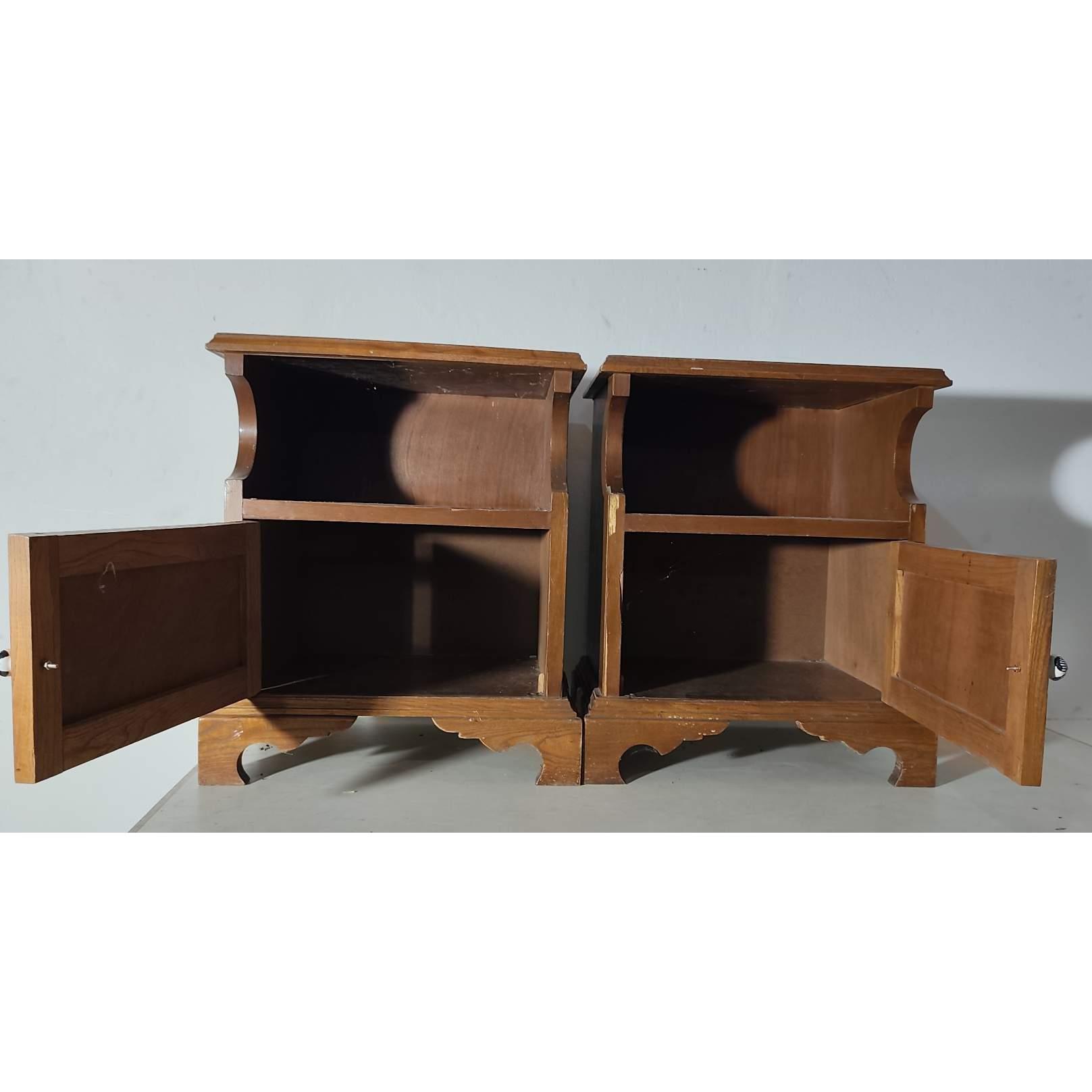 2 Mesas de luz en madera (52 x 38 x 63 de alto, algún detalle en madera, PRECIO POR CADA UNA)