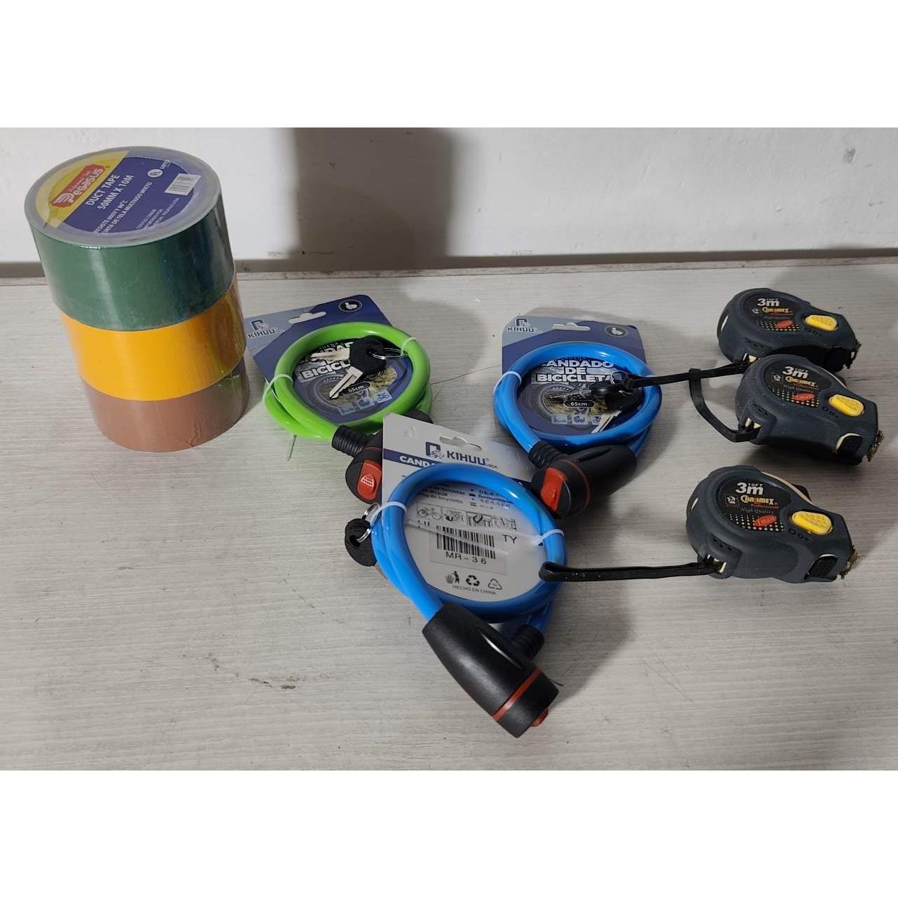 3 cintas pato , 3 candados para bici y 3 cintas metricas