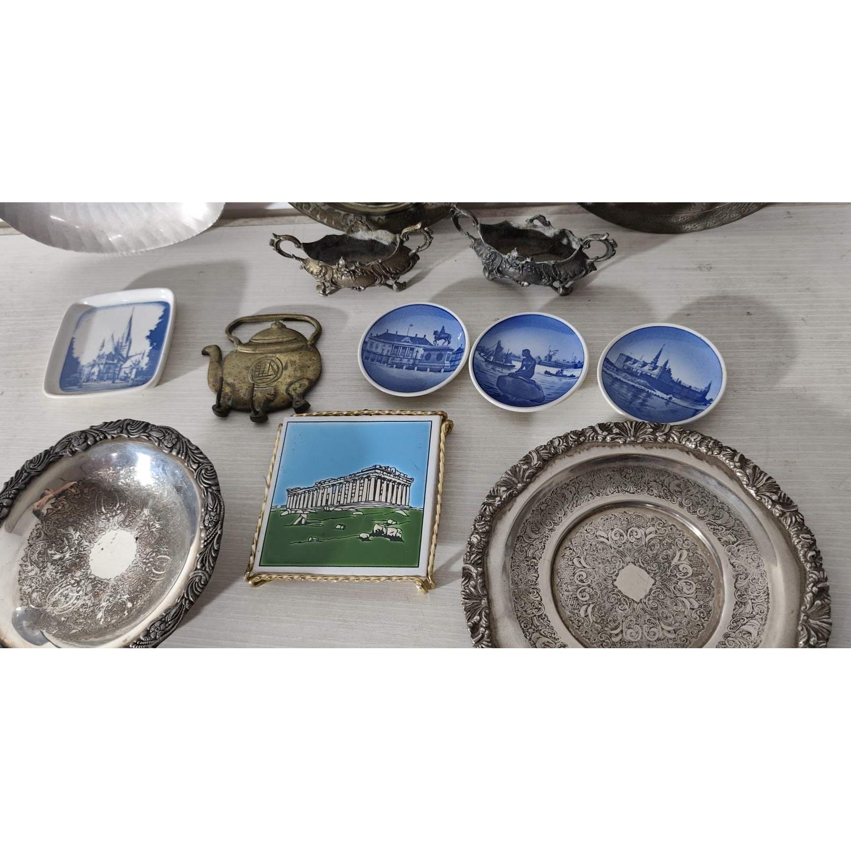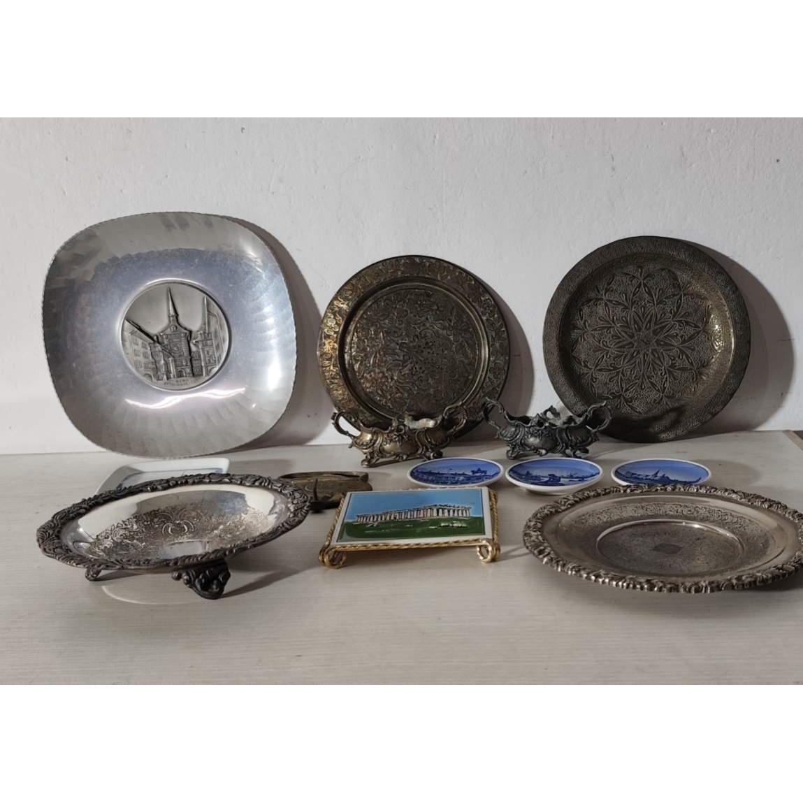 Lote de platillos y adornos en porcelana y metal
