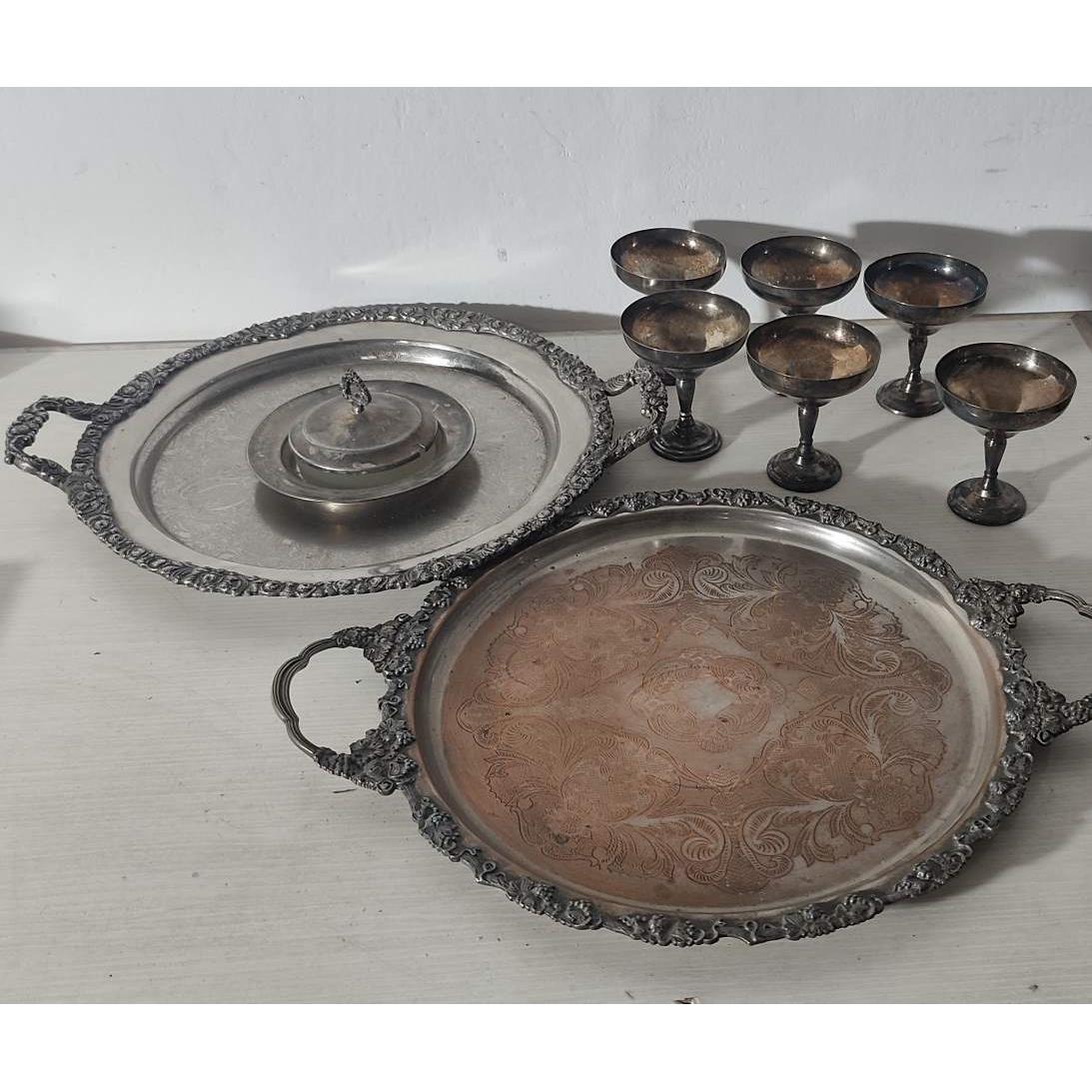 2 Bandejas para servicio en metal , Dulcera y 6 copas
